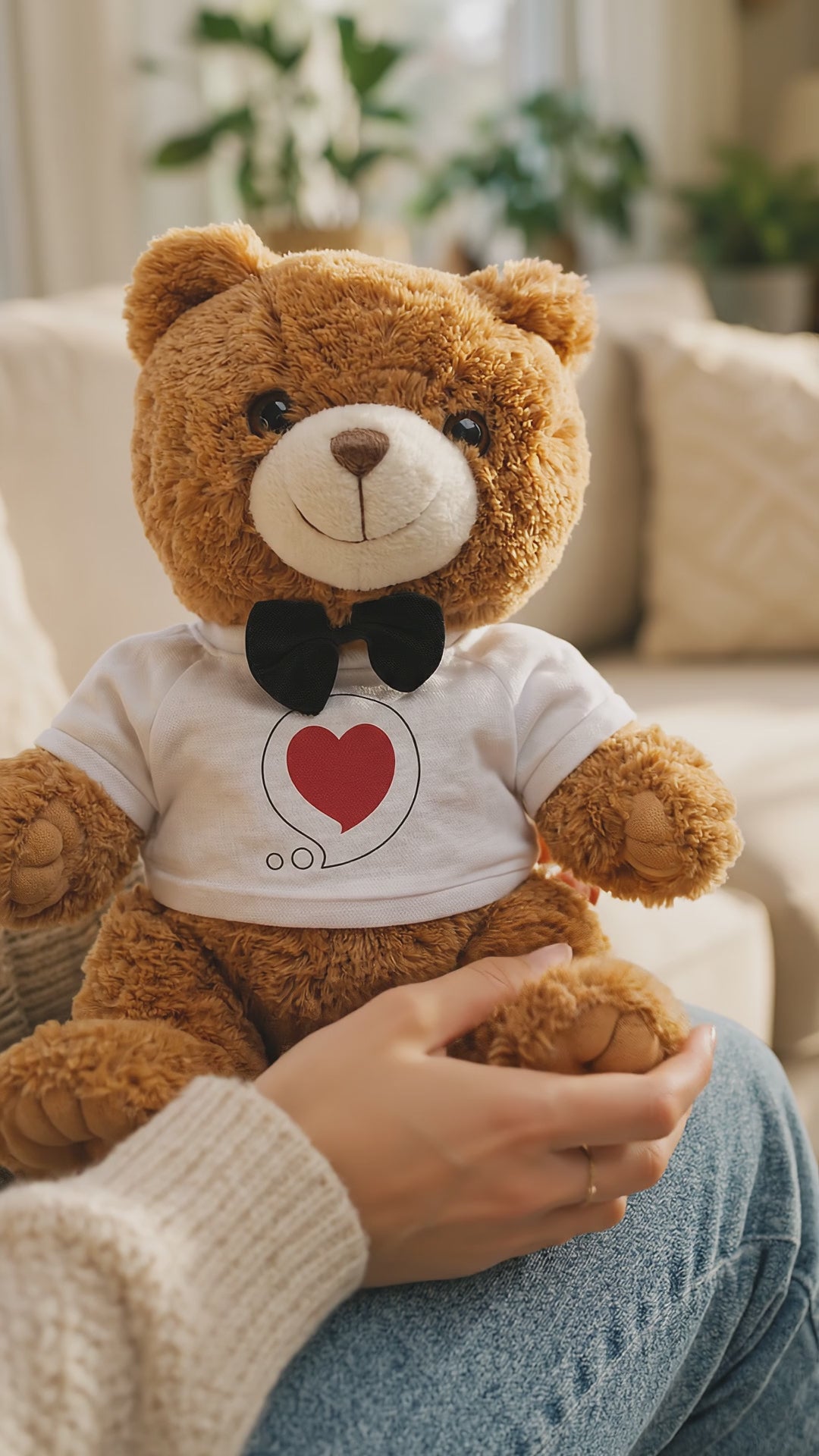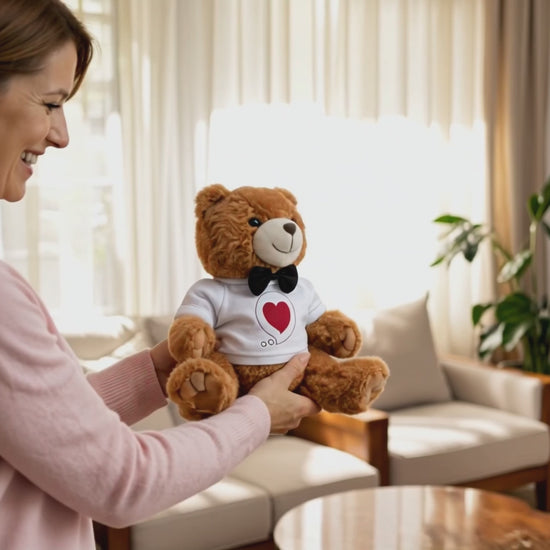 With plush fur, stitched details, and outstretched arms ready for an embrace, this bear brings warmth to everyday spaces — whether gifted for a special moment or simply because connection deserves to be seen. The removable shirt can be hand-washed separately to keep the print bright and the message clear for years to come.